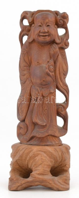 Leírás: Nevető Buddha faragott fa szobor. 21 cm