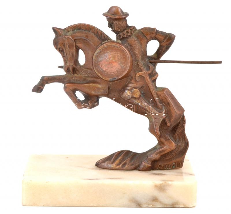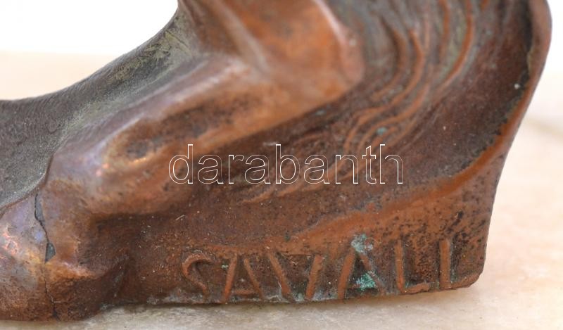 Leírás: Savall jelzéssel: Lovag, réz, alabástrom talapzaton, m: 15 cm
