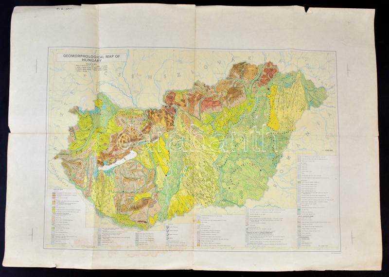 cca 1950-1960 Magyarország geomorfológiai térképe, Szerk.: Pécsi M., angol nyelven, Bp. Offset-ny., hajtásnyommal,a széleken kis szakadásokkal, 49x69 cm