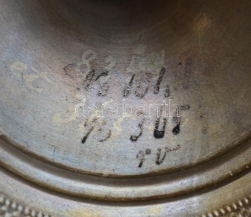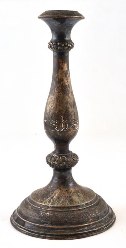 Leírás: Ezüst gyertyatartó, jelzett, JI mestejeggyel 182 g, 25 cm