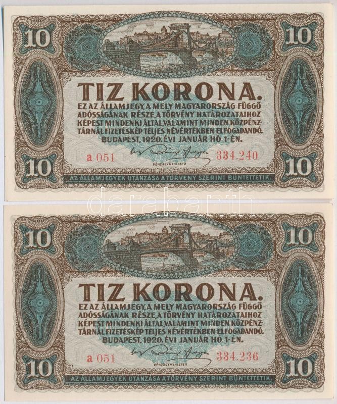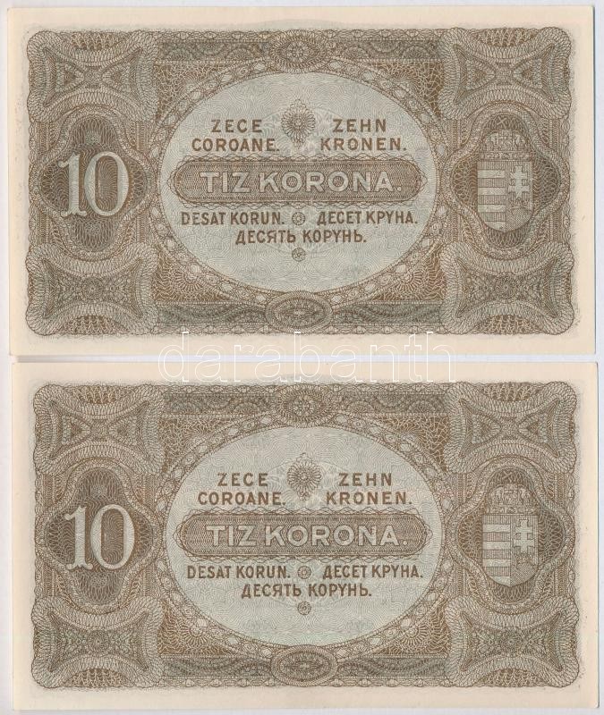 Leírás: 1920. 10K (2x) közeli sorszámok T:I-