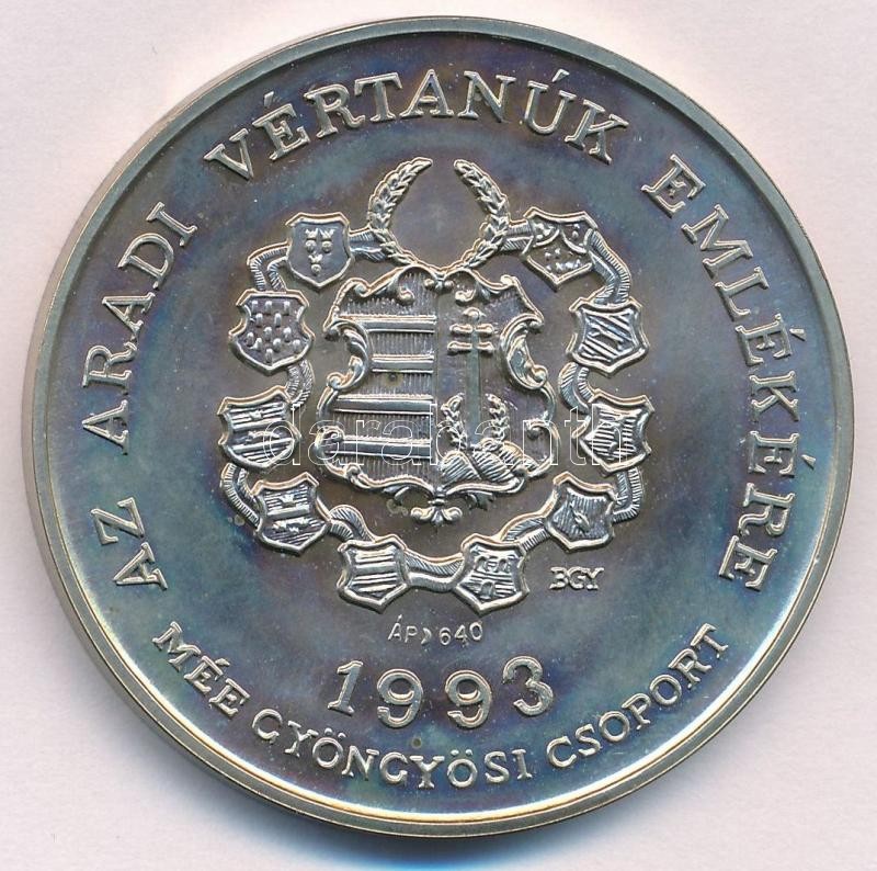 Leírás: Bognár György (1944-) 1993. "MÉE Gyöngyösi Csoport - Aradi Vértanúk / Aulich Lajos" Ag emlékérem (34,74g/0.640/42,5mm) T:1 Adamo GS10