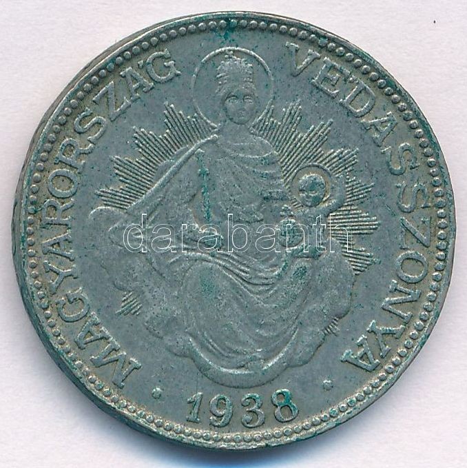 1938. 2P Ag "Madonna" T:2 patina, ph. Adamo P7 https://www.darabanth.com/hu/365-Gyorsarveres/365.0/Numizmatika/Magyar-es-magyar-verdejelu-fem-es-ezustpenzek~2000008/1938-2P-Ag-Madonna-T2-patina-ph-Adamo-P7~II2113050