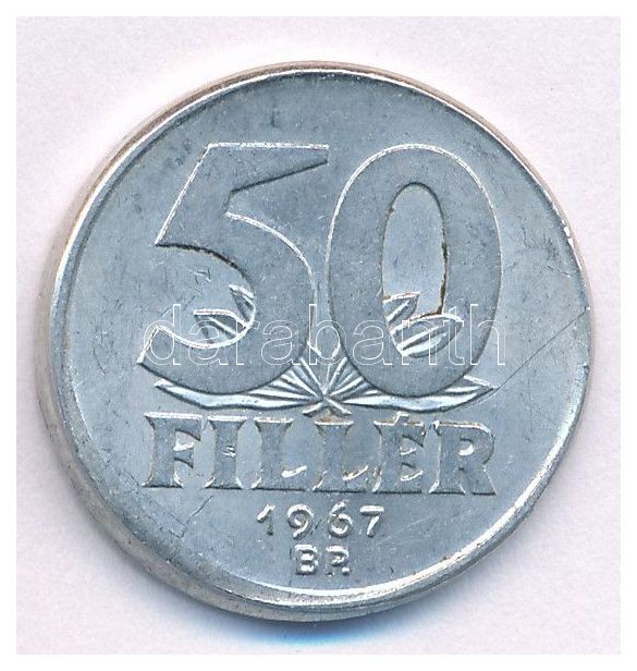Leírás: 1967. 50f Al technológiai hibás veret (félrecsúszott veret) T:1-,2