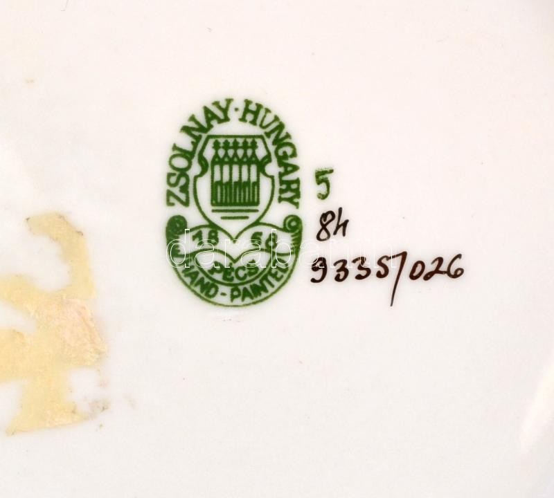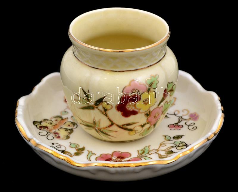 Leírás: Zsolnay pillangó mintás hamutál és vázácska. Kézzel festett, jelzett, hibátlan. d: 12 cm, m: 7 cm.