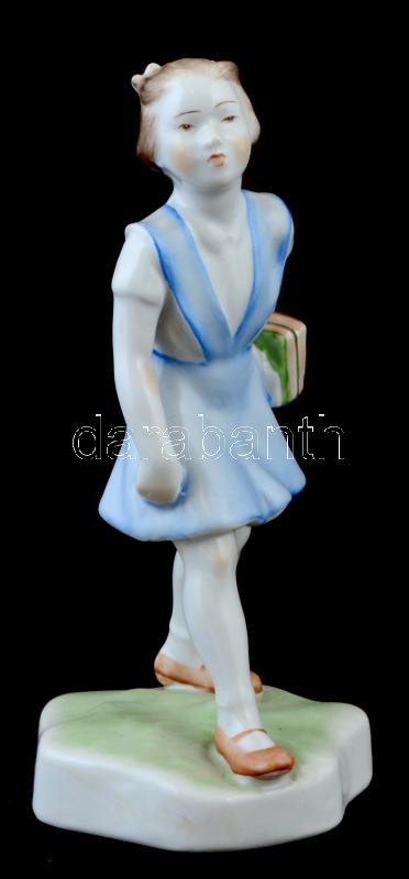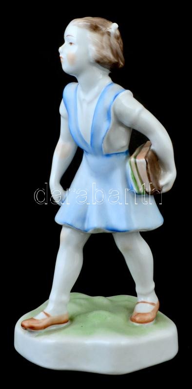 Leírás: Zsolnay porcelán lány könyvekkel, kézzel festett, jelzett, kis kopásnyomokkal, m: 18 cm