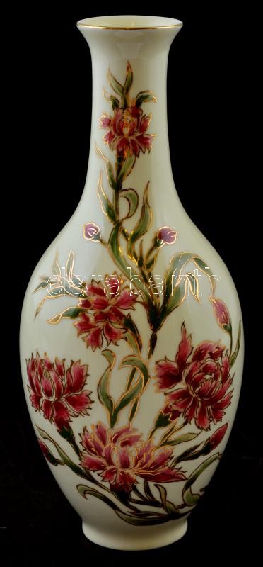 Leírás: Zsolnay virágmintás váza. Kézzel festett, jelzett, hibátlan. m: 27 cm