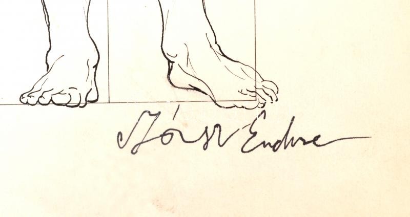 Leírás: Szász jelzéssel: Ádám és Éva, Tus, papír, kisebb szakadásokkal, 50x50 cm