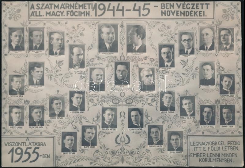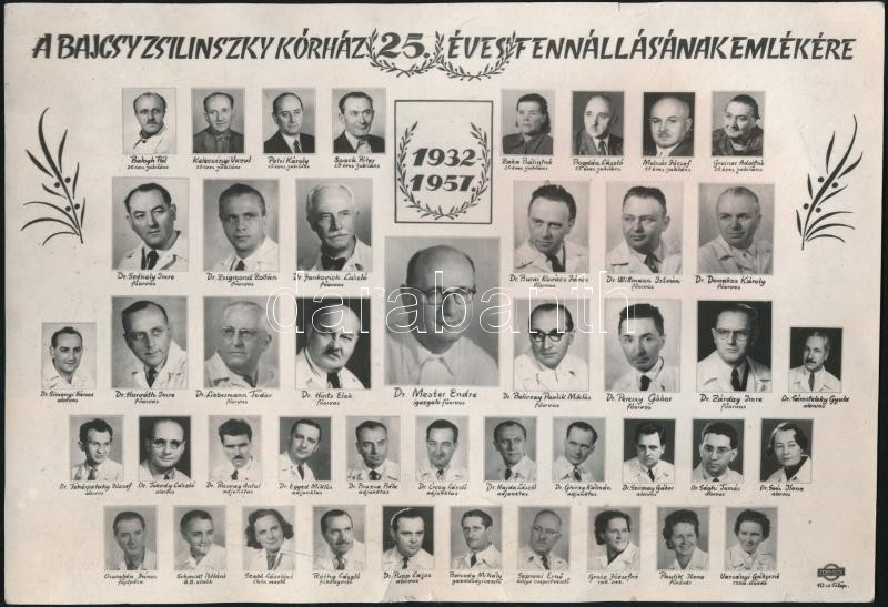 Leírás: 1945, 1957 A Bajcsy-Zsilinszky Kórház és a Szatmárnémeti Áll. Magy. Főgimnázium tablóképe, 2 db, felületükön törésnyomokkal, 15×22 és 16×23 cm