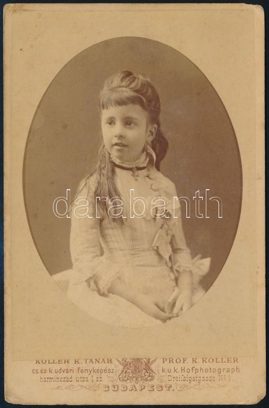 Leírás: cca 1877 Budapest, Koller Károly (1838-1889) tanár, császári és királyi udvari fényképész budapesti műtermében készült vintage fotó, 16,5x10,7 cm