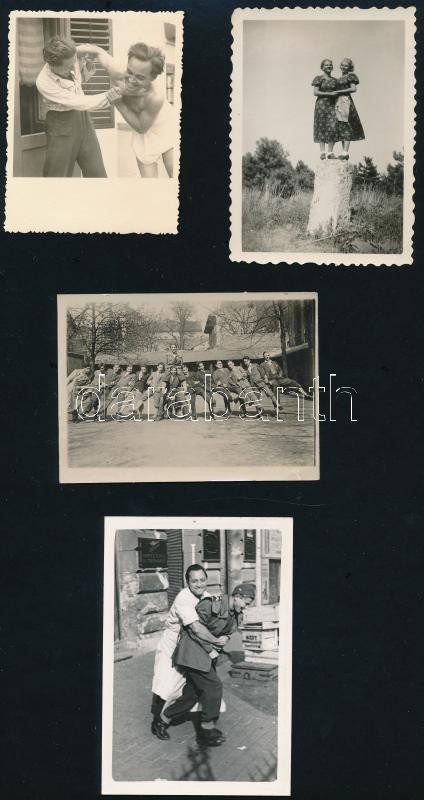cca 1945 előtt készült ,,bolondos" fényképek, 13 db vintage fotó, amelyek eltérő időben és változó helyszíneken készültek, 6x4,5 cm és 9,5x6,5 cm között