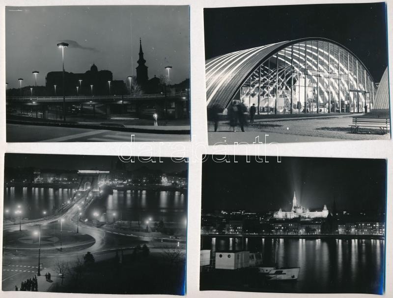 Leírás: cca 1967 Budapest éjjel, 11 db vintage fotó a városról, 9x12 cm