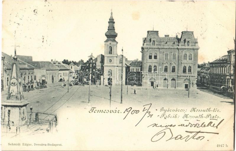 1900 Temesvár, Timisoara; Gyárváros, Kossuth tér, templom, emlékmű / F... https://www.darabanth.com/hu/366-Gyorsarveres/366.0/Kepeslapok/Erdely~1500006/1900-Temesvar-Timisoara-Gyarvaros-Kossuth-ter-templom-emlekmu-Fabrica-church-square-~II2107143