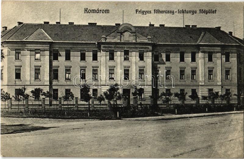 Komárom, Komárno; Frigyes főherceg lovassági laktanya, főépület. L. H.... https://www.darabanth.com/hu/366-Gyorsarveres/366.0/Kepeslapok/Felvidek~1500007/Komarom-Komarno-Frigyes-foherceg-lovassagi-laktanya-foepulet-L-H-Pannonia-1912-2-Ku~II2119981