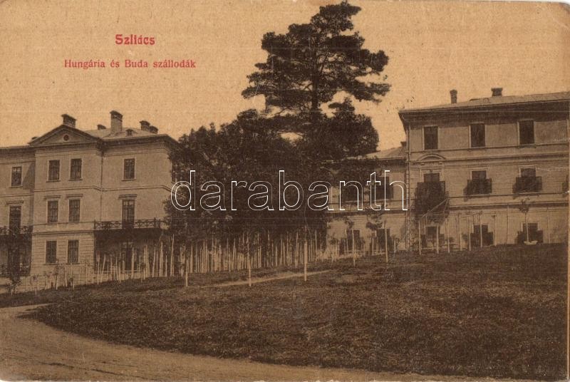 Leírás: Szliács, Sliac; Hungária és Buda szállodák. "A Magyar Bazár" Waktor Sámuel kiadása / hotel (EK)