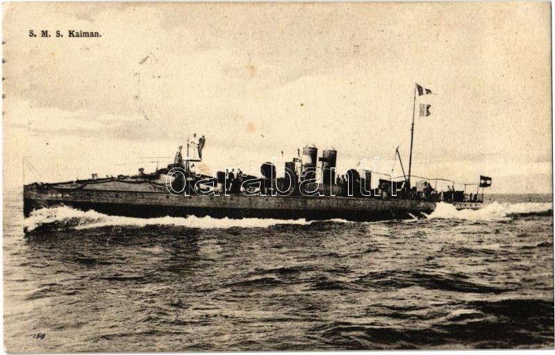 SMS Kaiman (később SM Tb 50 T) osztrák-magyar haditengerészet Kaiman-o... https://www.darabanth.com/hu/366-Gyorsarveres/366.0/Kepeslapok/Hadihajo~1500021/SMS-Kaiman-kesobb-SM-Tb-50-T-osztrak-magyar-haditengereszet-Kaiman-osztalyu-torpedonaszadj~II2116550