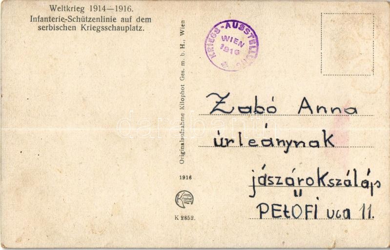 Weltkrieg 1914-1916. Infanterie-Schützenlinie auf dem serbischen Kriegsschauplatz / WWI Austro-Hungarian K.u.K. military, infantry firing line in Serbia + "KRIEGS-AUSSTELLUNG WIEN 1916" (small tear)