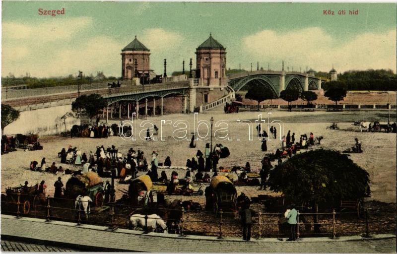 1908 Szeged, Közúti híd, piaci árusok. L. & P. 2404. https://www.darabanth.com/hu/366-Gyorsarveres/366.0/Kepeslapok/Magyarorszag~1500005/1908-Szeged-Kozuti-hid-piaci-arusok-L-P-2404~II2119322