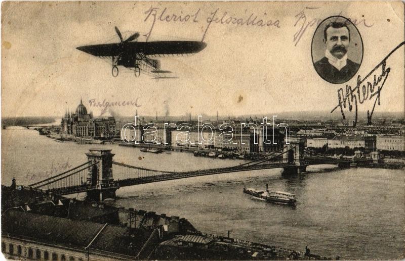 1909 Budapest, Bleriot repülőgépe a Lánchíd felett (EK) https://www.darabanth.com/hu/366-Gyorsarveres/366.0/Kepeslapok/Magyarorszag~1500005/1909-Budapest-Bleriot-repulogepe-a-Lanchid-felett-EK~II2123194