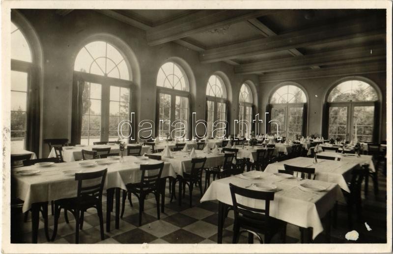 Leírás: 1935 Balatongyörök, Belügyminiszteri számvevőségi üdülőház, étterem, belső