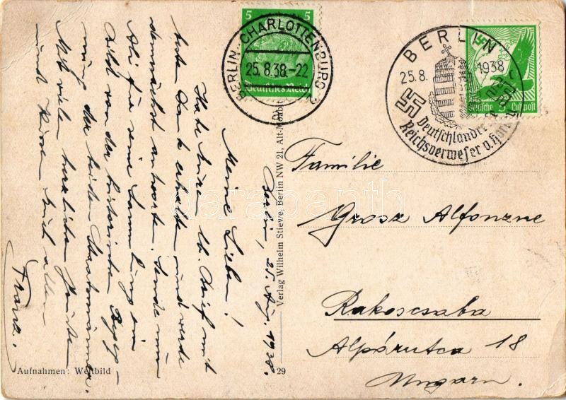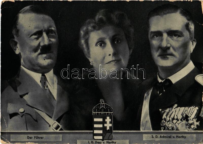 Der Führer, Frau von Horthy, Admiral von Horthy; Verlag Wilhelm Stiewe / Hitler, Horthy, Purgly "1938 Berlin Deutschlandreisse Reichsverweser von Horthy" So. Stpl (EB)