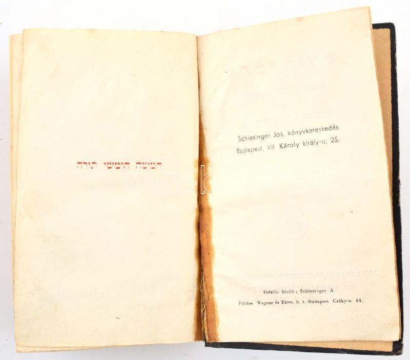 Leírás: Héber nyelvű könyv. Bp., én., Földes, Wágner és Társa Bt. Átkötött félvászon-kötésben, 3 lap laza.