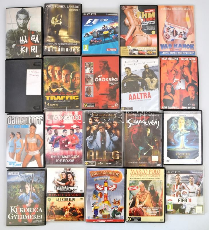Leírás: 15 db dvd film, további 3 egyéb műsoros dvd, és 1 ps3-as játék