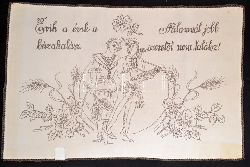 "Érik a érik a búzakalász, nálamnál jobb szeretőt nem találsz", hímzet... https://www.darabanth.com/hu/366-Gyorsarveres/366.0/Mutargy-papirregiseg-egyeb/Bolhapiac~500011/Erik-a-erik-a-buzakalasz-nalamnal-jobb-szeretot-nem-talalsz-himzett-falvedo-foltozva~II2123570