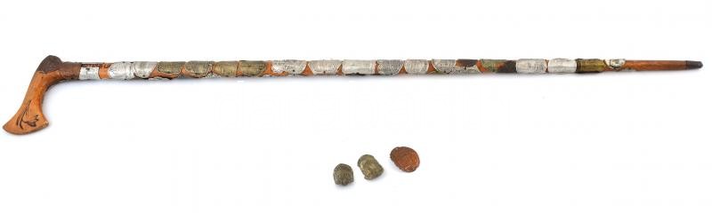 Leírás: Fa túrabot jelvényekkel + 3 db botjelvény, h: 88 cm