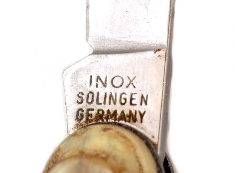 Leírás: Gyöngyház nyelű, Solingen jelzett zsebkés