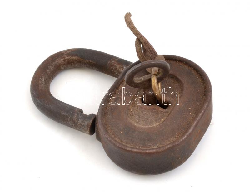 Leírás: Régi vas lakat kulccsal, működik, 6×9 cm
