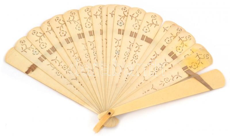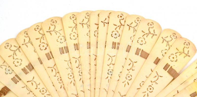 Leírás: Szaru lapokból álló legyező áttört mintával 14 cm