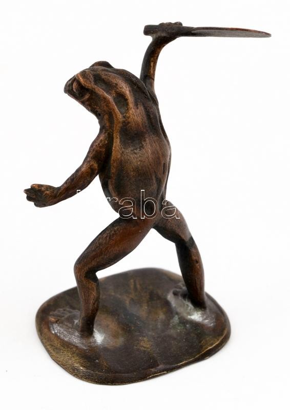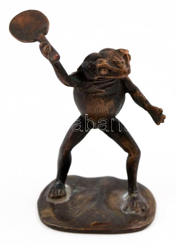 Leírás: Teniszező béka, bronz figura, jelzett, m: 5,5 cm