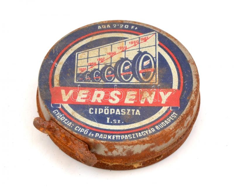 Verseny cipőpaszta doboz, rozsdás, d: 6 cm https://www.darabanth.com/hu/366-Gyorsarveres/366.0/Mutargy-papirregiseg-egyeb/Bolhapiac~500011/Verseny-cipopaszta-doboz-rozsdas-d-6-cm~II2117836