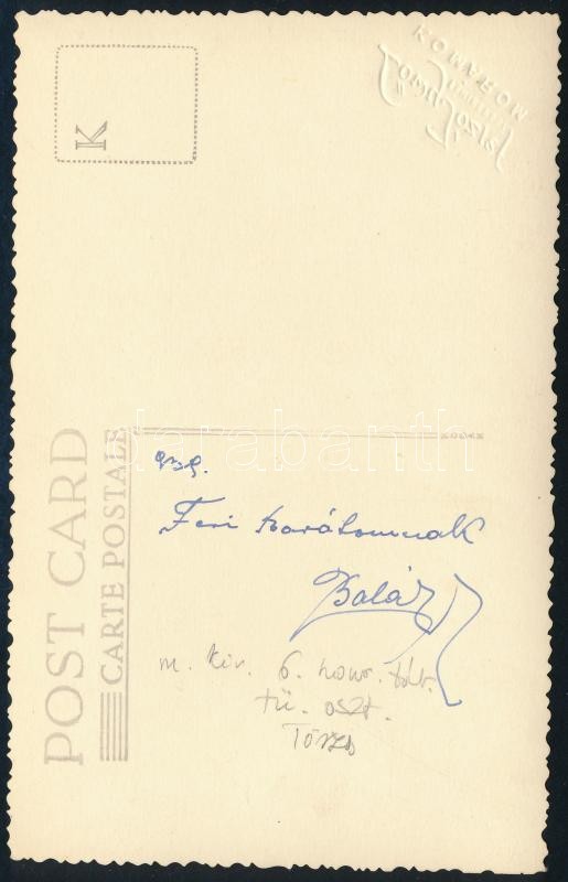 1939 A Magyar Királyi 6. Honvéd Tábori Tüzérosztály törzstiszti katonája teljes díszben a felvidéki bevonuláskor, Lőwy József komáromi fotós hidegpecséttel jelzett fotója, hátoldalon feliratozva, 13×8 cm