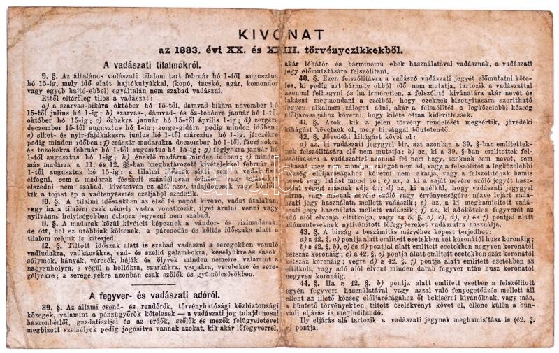 Leírás: 1920 Balassagyarmat, vadászati jegy, hajtott