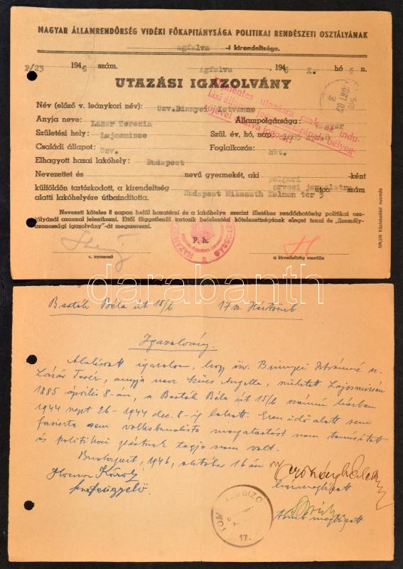 1946 2 db utazási igazolvány https://www.darabanth.com/hu/366-Gyorsarveres/366.0/Mutargy-papirregiseg-egyeb/Okmanyok~500017/1946-2-db-utazasi-igazolvany~II2122620