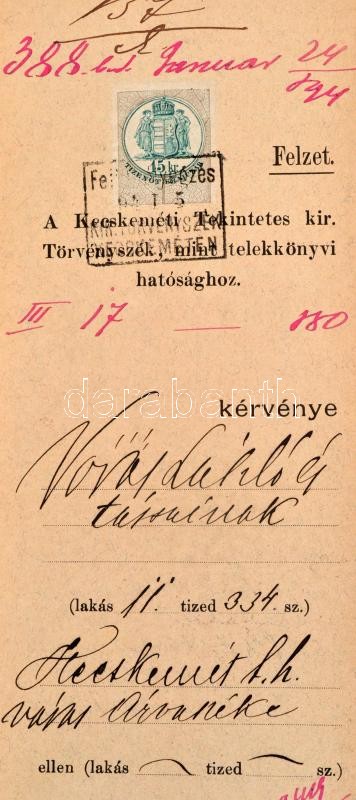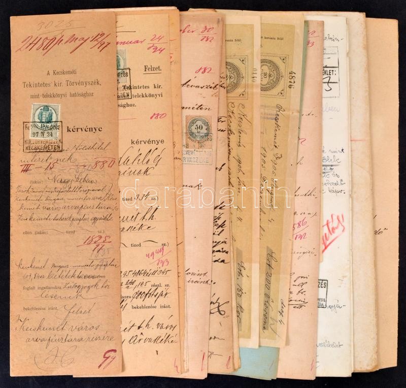 Leírás: cca 1890-1920 14 db régi okmány illetékbélyegekkel, 2 db váltóval