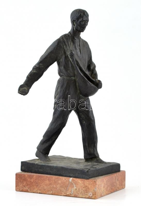 Leírás: Paukert 1941 és LIL Zukov jelzéssel: Magot vető férfi szobor. Spiáter, márvány talapzaton, m: 32 cm