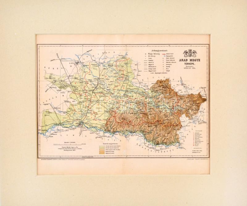 Leírás: 1893 Arad vármegye térképe,1:550.000, tervezte: Gönczy Pál, Pallas Nagy Lexikona, Bp., Posner, paszpartuban, 23x28 cm