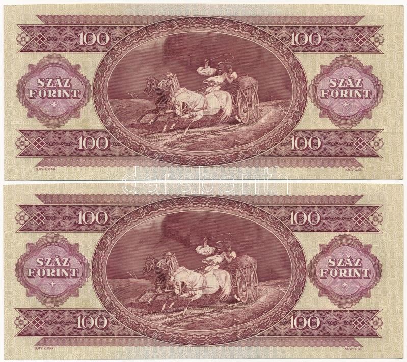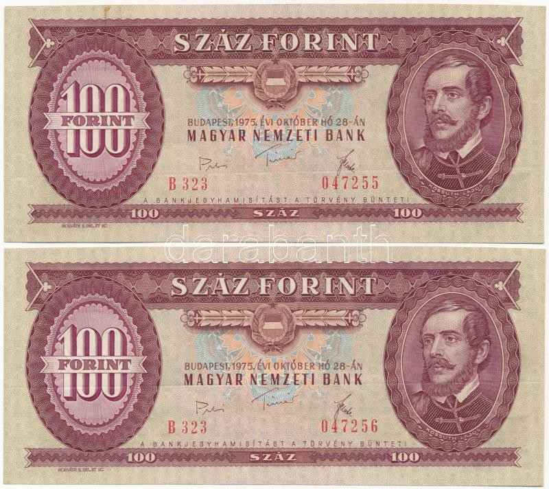 Leírás: 1975. 100Ft (2x) sorszámkövető T:I-, papírránc, fo.