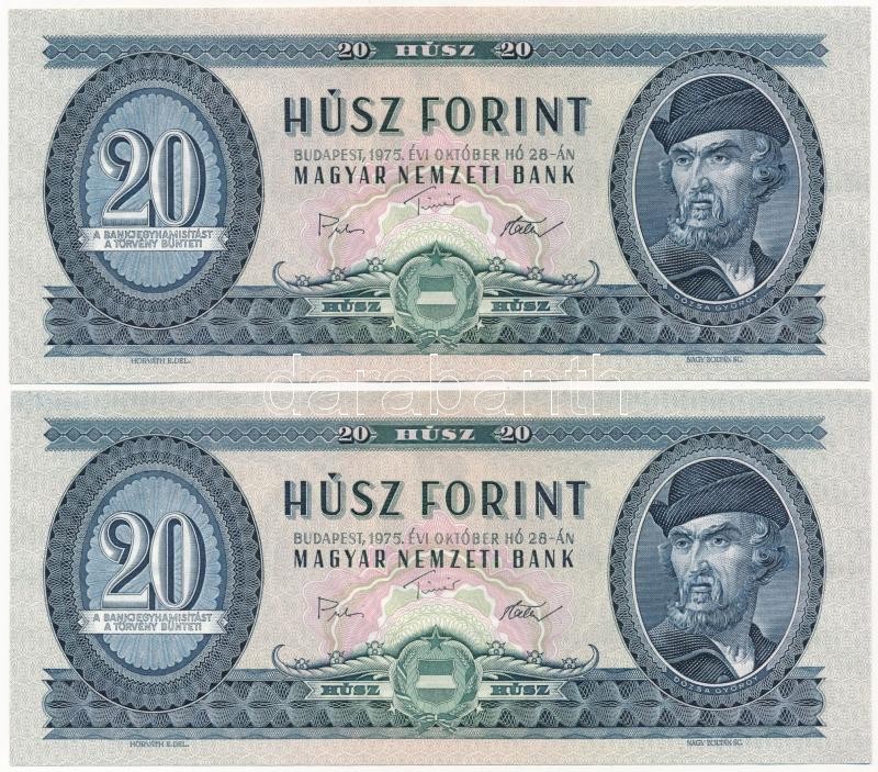 Leírás: 1975. 20Ft (2x) sorszámkövető T:I Adamo F16