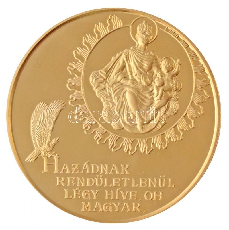 Leírás: Bognár György (1944-) 1990. "Magyar Köztársaság 1956-1989. Október 23. / Hazádnak rendületlenül légy híve, oh magyar" aranyozott piefort emlékérem, fa dísztokban (65mm) T:PP