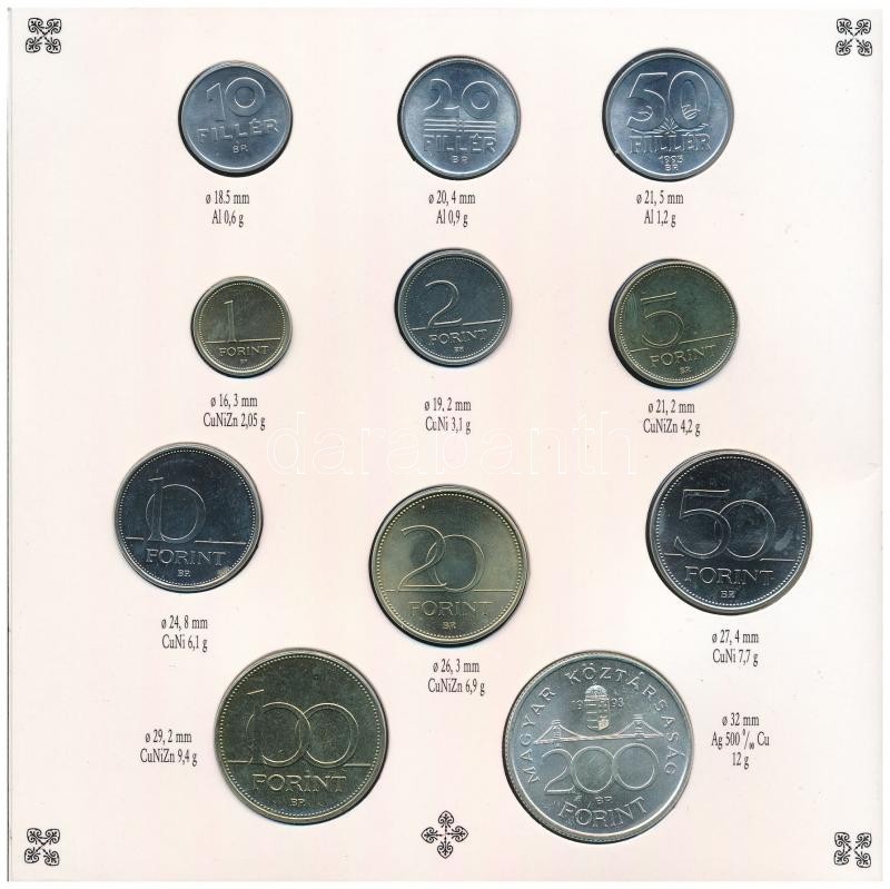 1993. 10f-200Ft (11xklf) forgalmi sor dísztokban, benne 200Ft Ag "MNB"... https://www.darabanth.com/hu/366-Gyorsarveres/366.0/Numizmatika/Magyar-es-magyar-verdejelu-fem-es-ezustpenzek~2000008/1993-10f-200Ft-11xklf-forgalmi-sor-disztokban-benne-200Ft-Ag-MNB-Magyarorszag-penzermei~II2116386