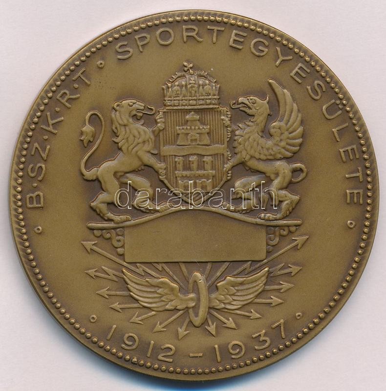 Leírás: Berán Lajos (1882-1943) 1937. "BSZKRT Sportegyesülete 1912-1937" kétoldalas Br emlékérem (62mm) T:1