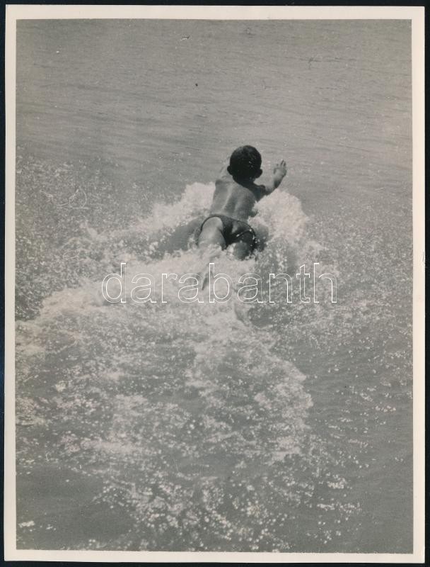 Leírás: cca 1933 Kinszki Imre (1901-1945) budapesti fotóművész hagyatékából pecséttel jelzett vintage fotó (Ugrás a vízbe), 15,5x11,8 cm