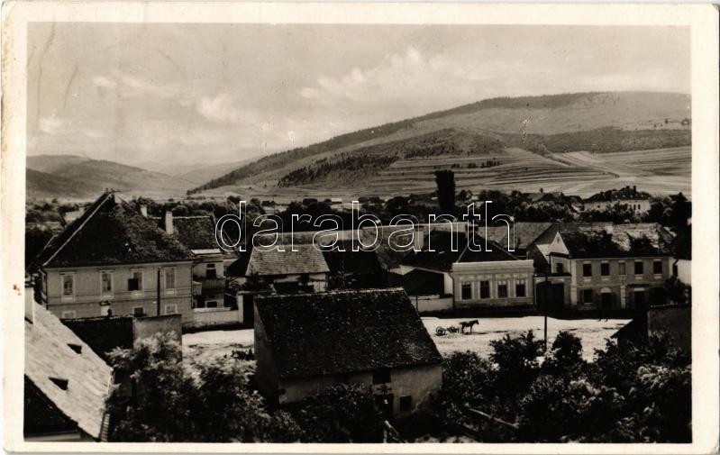Leírás: 1942 Csíkszépvíz, Szépvíz, Frumoasa; Fő tér, üzlet, háttérben a Kishavas / main square, shop, mountain (EK)