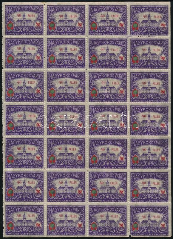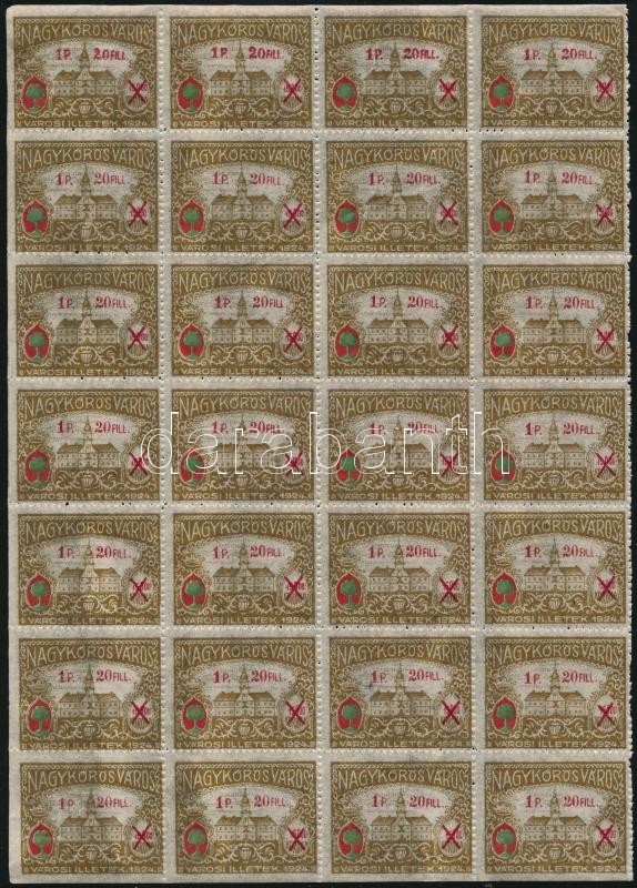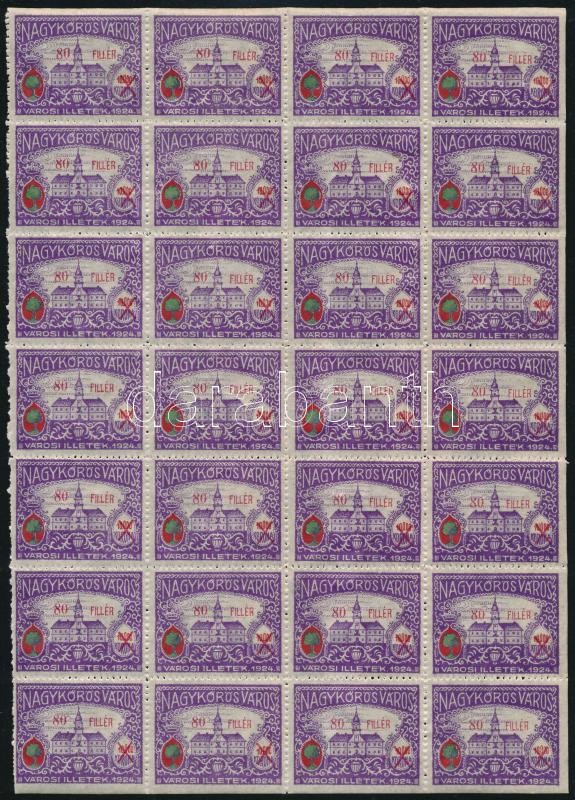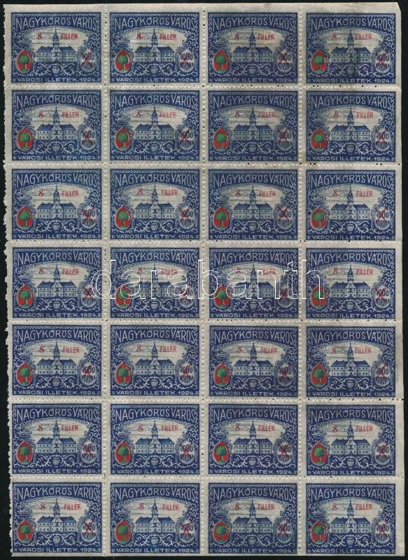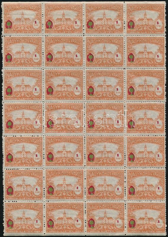 Leírás: 1928-1933 5 klf Nagykőrösi városi illetékbélyeg 28 darabos ívdarabokban
