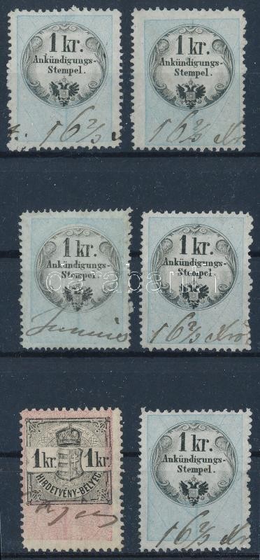 Leírás: cca 1860 6 db 1kr hirdetménybélyeg