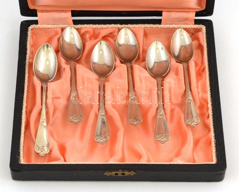 Leírás: 6 db alpakka mokkás kanál, dobozban, h: 11 cm